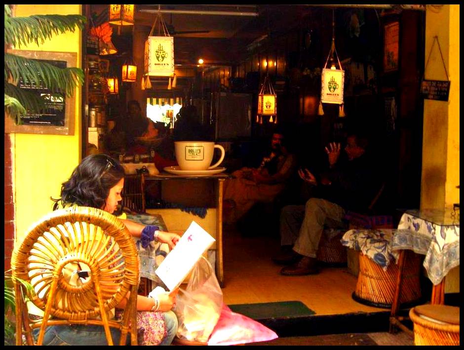 The second joint is Dolly’s. Tucked in one corner of Dakshinapon Shopping Complex in South Kolkata it is THE perfect place for aficionados like us (and chatterboxes too). You can finish one cup of tea in an hour. No time limit. It is infested with college students, lovers, antels (Bong intellectuals) and the like. It is tiny and cosy with walls paneled with old tea-chests. What marks it different from other tea-joints, is, it sells a huge variety of teas by kilos, ranging from a modest 400 rupees per kg to 10,000 rupees per kg. The other interesting part is that it is one of those rare places that serve these teas by a small cup allowing you to play a tea-tester/taster and convince yourself with your purchase. Try the Makaibari Oolong, Darjeeling Autumn, Makaibari Silvertips. Oolong is treated with great reverence for its aroma and it is considered a crime to put add milk and sugar in it. Darjeeling teas, fail to excite me so for me, Dolly’s is all about iced tea and their endless variety. Iced tea with a scoop of icecream, orange, watermelon, peach flavoured iced teas are considered juvenile but that’s my kind of poison.